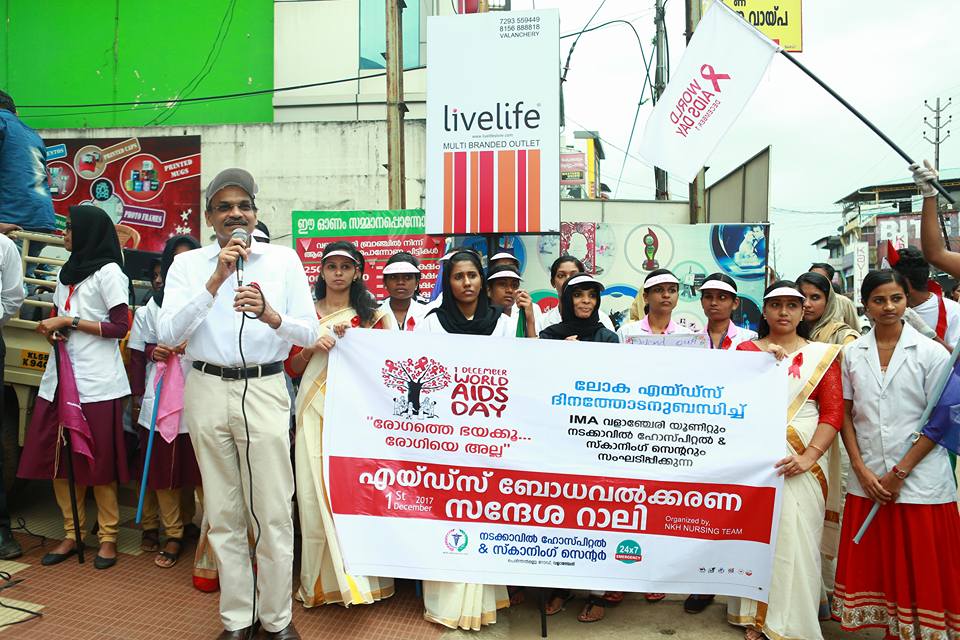 വളാഞ്ചേരി: ലോക എയ്ഡ്സ് ദിനത്തിൽ ഐഎംഎ യൂണിറ്റും വളാഞ്ചേരി നടക്കാവിൽ ആശുപത്രിയും ചേർന്ന് എയ്ഡ്സ്സ് ബോധവൽക്കരണ റാലിയും സമ്മേളനവും നടത്തി. ഗാനരചയിതാവ് റഫീഖ് അഹമ്മദ് ഉദ്ഘാടനം ചെയ്തു. ഡോ. എൻ.മുഹമ്മദലി ആധ്യക്ഷ്യം വഹിച്ചു. രാവിലെ എയ്ഡ്സ്സ് ബോധവൽക്കരണ സന്ദേശറാലിയും നടത്തി.
