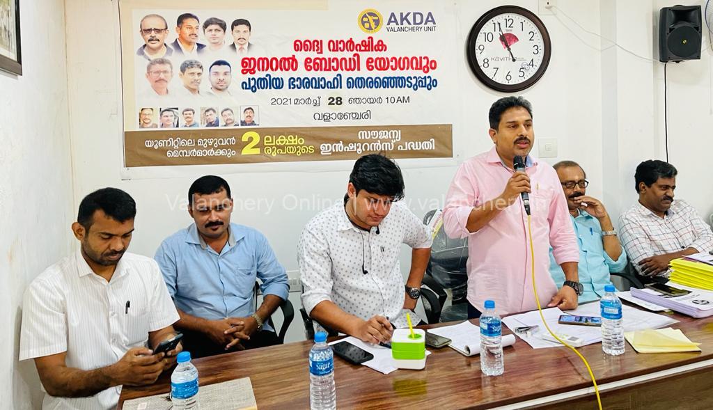 വളാഞ്ചേരി:ആൾ കേരള ഡിസ്ട്രിബ്യൂട്ടേഴ്സ് അസോസിയേഷൻ (AKDA) വളാഞ്ചേരി യുണിറ്റ് ജനറൽ ബോഡി വളാഞ്ചേരിയിൽ നടന്നു. പ്രസിഡന്റ് അബ്ദു സമദ് ബിസ്മി അധ്യക്ഷനായ യോഗത്തിൽ ജില്ലാ പ്രസിഡണ്ട് വത്സൻ മേനോൻ ഉദ്ഘാടനം നിർവ്വഹിച്ചു. യൂണിറ്റ് ജനറൽ സെക്രട്ടറി ശറഫുദ്ധീൻ തയ്യിൽ സ്വാഗതം പറഞ്ഞു. ട്രഷറർ ഫൈസൽ കുറ്റിപ്പുറം വരവ് ചിലവ് കണക്കുകൾ അവതരിപ്പിച്ചു.