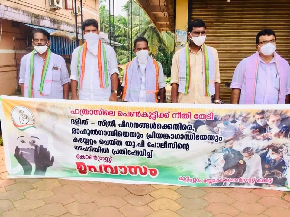 എടയൂർ: ഹത്രാസിലെ പെൺകുട്ടിക്ക് വേണ്ടി പോരാടിയ രാഹുൽ ഗാന്ധിയെയും പ്രിയങ്കാ ഗാന്ധിയെയും കയ്യേറ്റം ചെയ്ത യു.പി.പോലീസിന്റെ കിരാത നടപടിക്കെതിരെ എടയൂർ മണ്ഡലം കോൺഗ്രസ് കമ്മിറ്റി ഉപവാസ സമരം സംഘടിപ്പിച്ചു. മണ്ഡലം പ്രസിഡണ്ട് കല്ലിങ്ങൽ മുഹമ്മദ് കുട്ടി, ബ്ലോക്ക് കോൺഗ്രസ്സ് കമ്മിറ്റി സെക്രട്ടറിമാരായ എം.ടി.അസീസ്, കെ.പി വേലായുധൻ, പഞ്ചായത്ത് സ്റ്റാൻഡിങ്ങ് കമ്മിറ്റി ചെയർമാൻ കെ.കെ.മോഹനകൃഷ്ണൻ, മണ്ഡലം ട്രഷറർ ബിനു ജോൺ, യൂത്ത് കോൺഗ്രസ് മണ്ഡലം പ്രസിഡണ്ട് ബഷീർ മാവണ്ടിയൂർ എന്നിവർ പങ്കെടുത്തു.