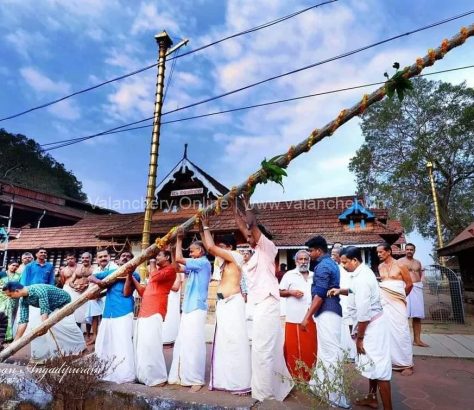 അങ്ങാടിപ്പുറം : തിരുമാന്ധാംകുന്ന് ഭഗവതീക്ഷേത്രത്തിൽ പൂരപ്പന്തലിനുള്ള കാൽനാട്ടി.