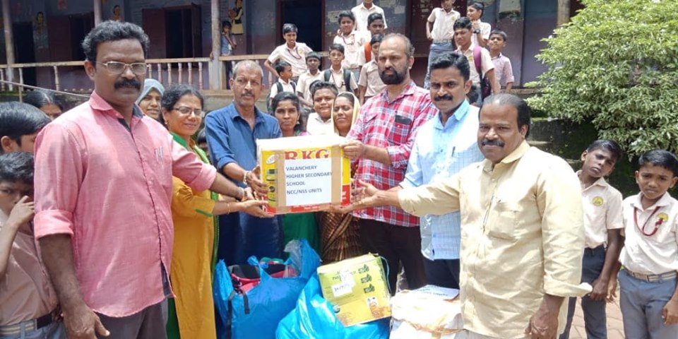 ദുരിതബാധിതരായ വിദ്യാർഥികൾക്കു പഠനോപകരണങ്ങൾ നൽകി വളാഞ്ചേരി ഹയർസെക്കൻഡറി, ഗേൾസ് ഹയർസെക്കൻഡറി സ്കൂൾ വിദ്യാർഥികൾ.