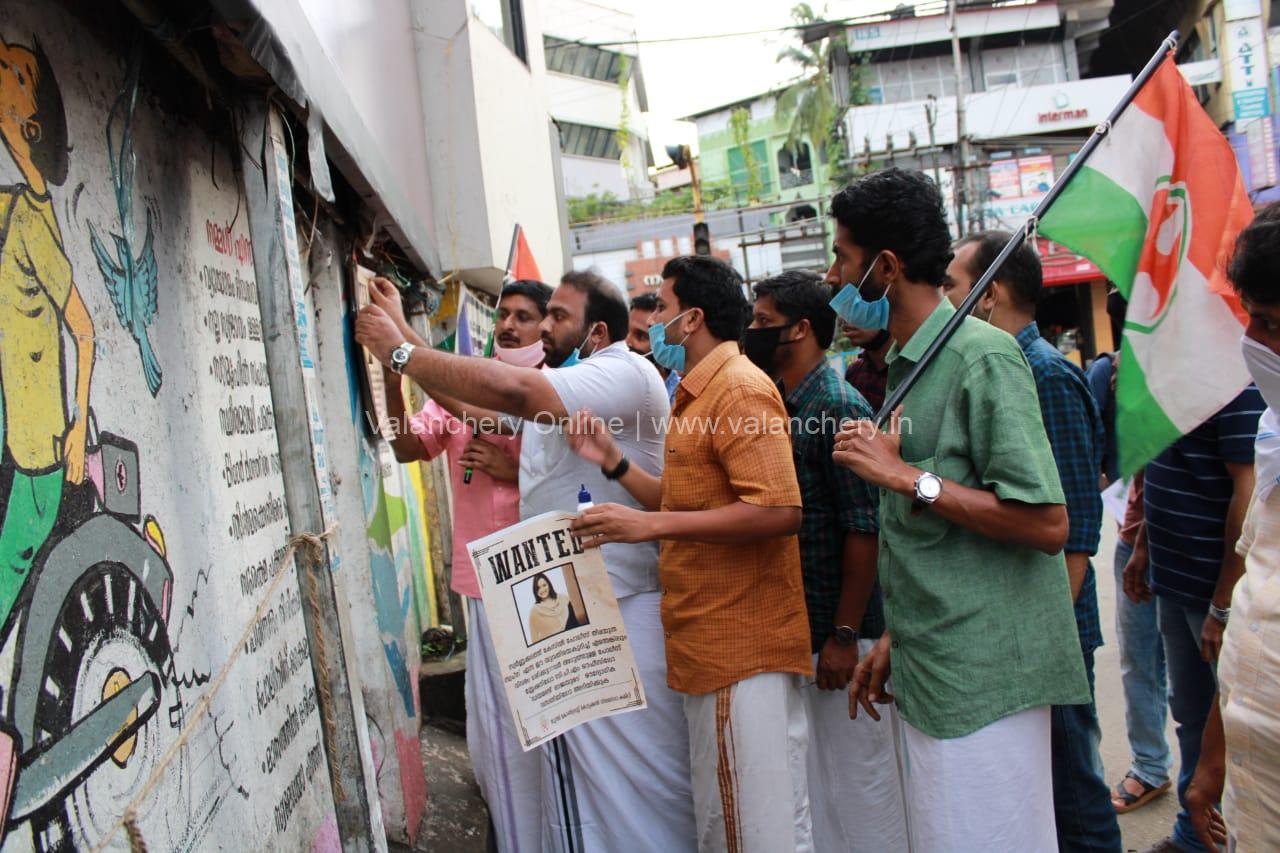വളാഞ്ചേരി: സ്വർണ കടത്തു കേസിൽ പോലീസ് തിരയുന്ന സ്വപ്ന എന്ന യുവതിയെ ഉടനെ കണ്ടെത്താൻ വേണ്ടി യൂത്ത് കോൺഗ്രസ് നിയമസഭ കമ്മറ്റിയുടെ നേത്ര്വതത്തിൽ വളാഞ്ചേരി ടൗണിൽ പൊതുസ്ഥലങ്ങളിൽ സ്വപ്നയുടെ ഫോട്ടോ പതിച്ച ലുക്ക്‌ ഔട്ട്‌ നോട്ടീസ് പതിച്ചു. കോട്ടക്കൽ നിയമസഭ യൂത്ത് കോൺഗ്രസ് പ്രസിഡന്റ് ഷബാബ് വക്കരത് അധ്യക്ഷത വഹിച്ച പരിപാടി ജില്ല യൂത്ത് കോൺഗ്രസ് ജനറൽ സെക്രട്ടറി മുഹമ്മദ് പാറയിൽ ഉത്ഘാടനം നിർവഹിച്ചു. വിനു പുല്ലാനൂർ, രാജേഷ് കാർത്തല എന്നിവർ സംസാരിച്ചു. മുത്തു പി.നൗഫൽ പാലാറ, അമീർ മുണ്ടക്കാട്ടിൽ, ഇസ്സുദ്ധീൻ പൈങ്കണ്ണൂർ, സബീഹ് പി കെ, ശരത് കെനോക്കി, റംഷാദ് വളാഞ്ചേരി, സൽമാൻ ഷറഫ്, ഷമീർ, ജിത്തു, എന്നിവർ പ്രതിഷേധത്തിന് നേത്ര്വതം കൊടുത്തു.